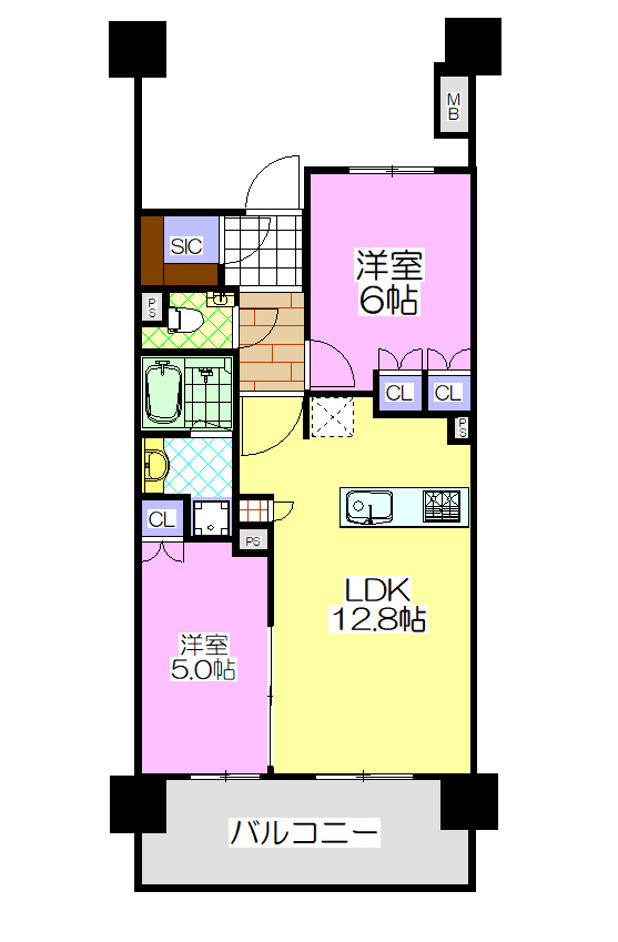 | 築年 | 令和2年5月築 | 間取内訳 | LDK約12.8帖 洋室6.0帖・5.0帖 |